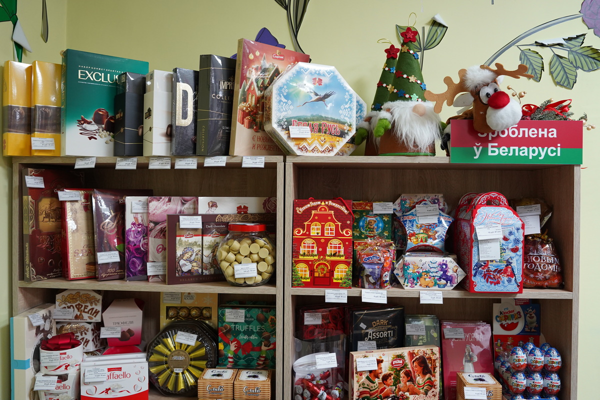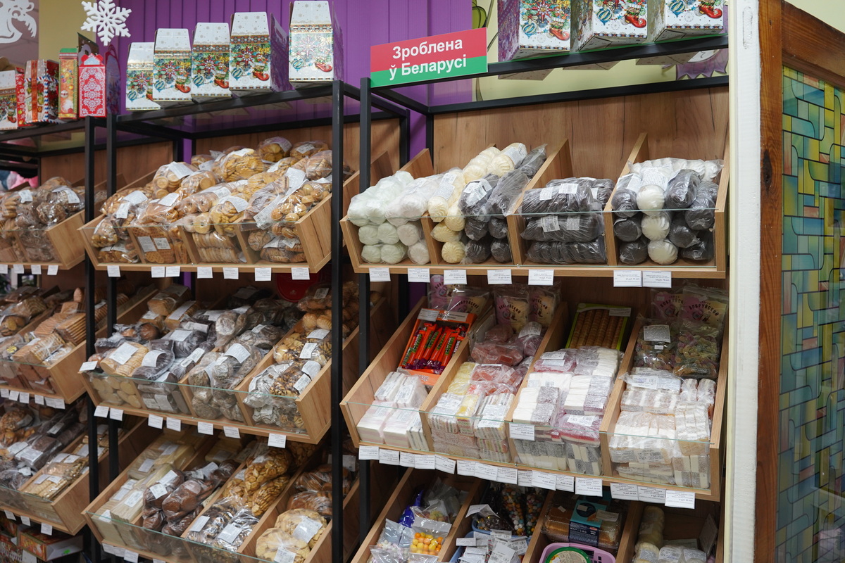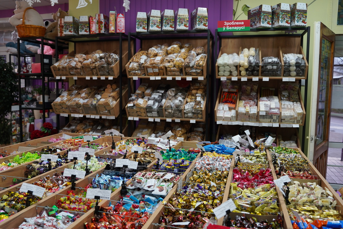 Здесь представлен широкий ассортимент кондитерской продукции: конфеты, зефир, вафли, мармелад, шоколад, чаи и многое другое. В продаже — изделия известных белорусских производителей: фабрики «Спартак», «Коммунарка», «Красный пищевик», «Красный мозырянин», «Витьба», «Слодыч». Также покупателям доступна продукция российских кондитеров, которая пользуется большим спросом.