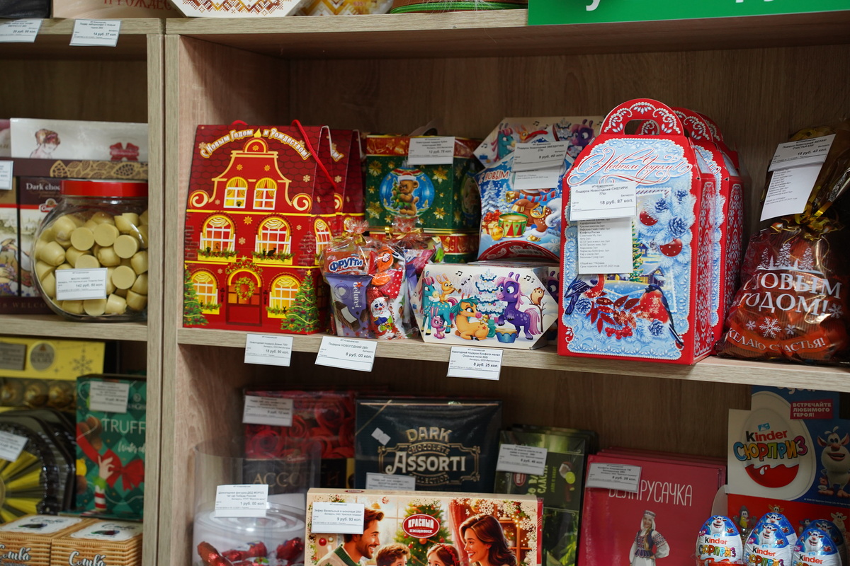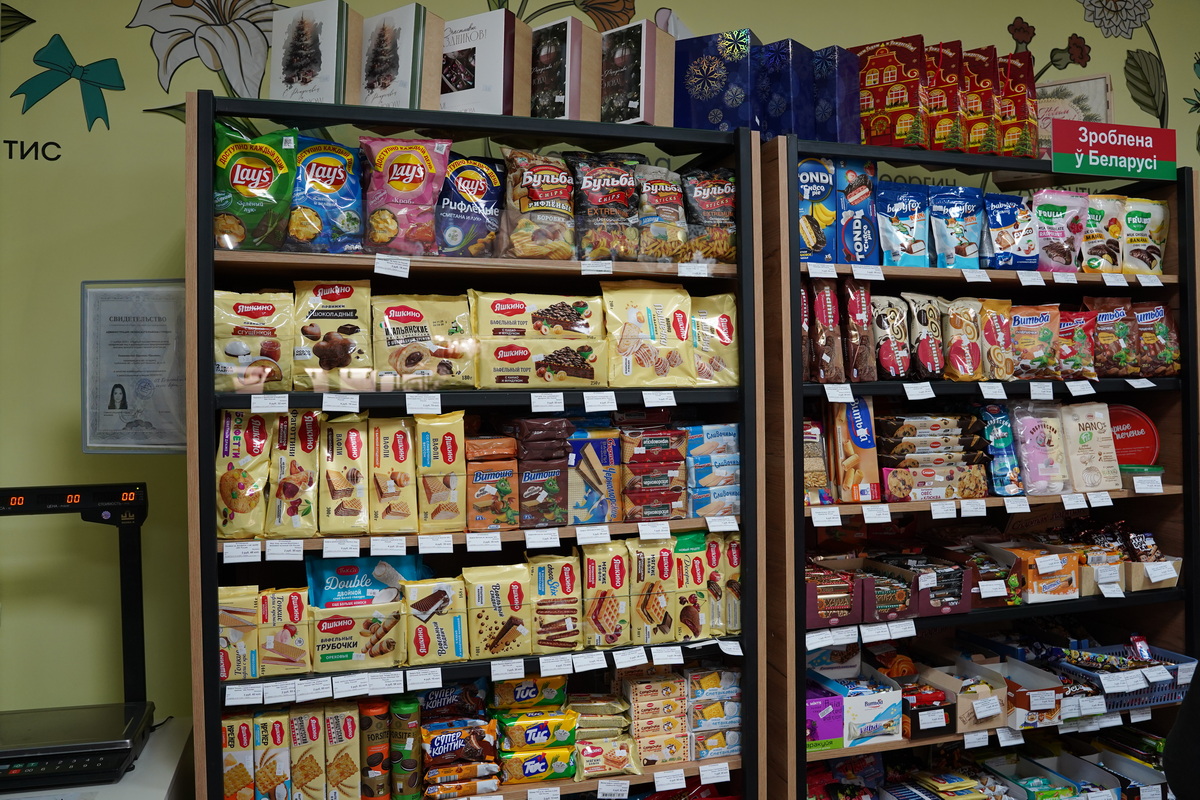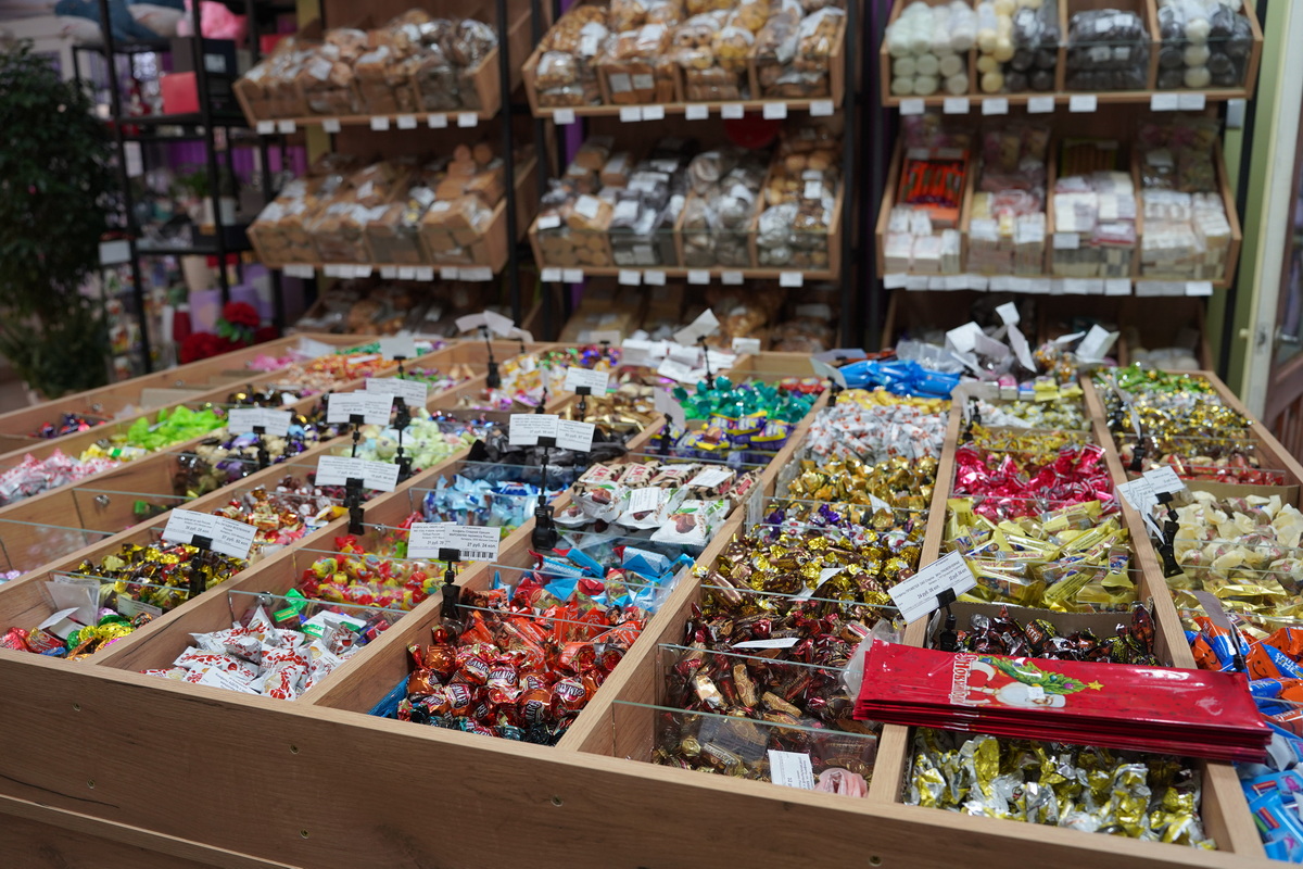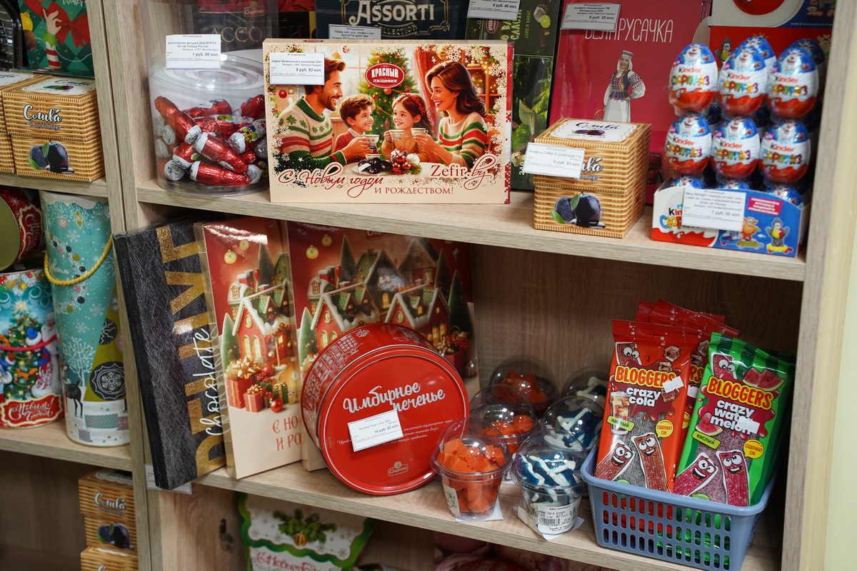 Здесь представлен широкий ассортимент кондитерской продукции: конфеты, зефир, вафли, мармелад, шоколад, чаи и многое другое. В продаже — изделия известных белорусских производителей: фабрики «Спартак», «Коммунарка», «Красный пищевик», «Красный мозырянин», «Витьба», «Слодыч». Также покупателям доступна продукция российских кондитеров, которая пользуется большим спросом.