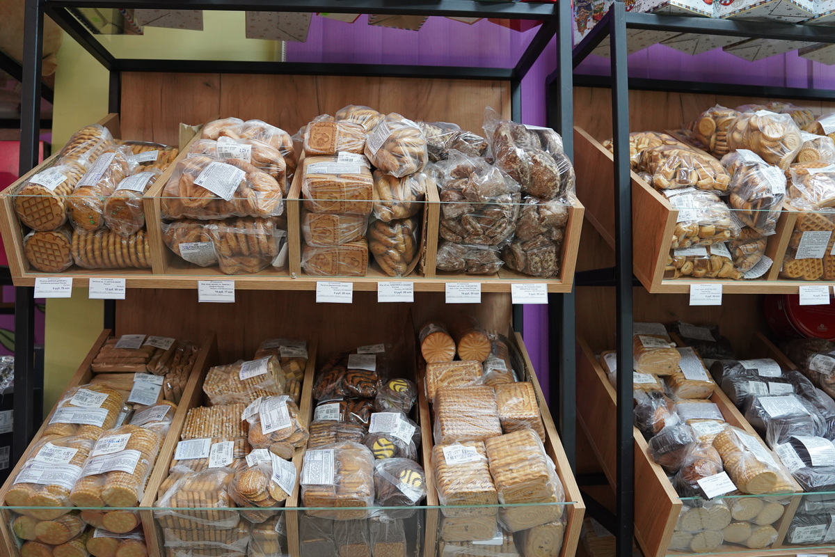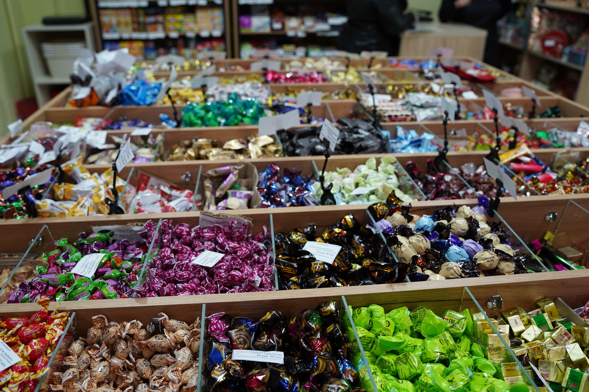 Главное преимущество магазина — большой выбор весовых сладостей: печенье, зефир, мармелад и многое другое. Такая продукция всегда выгоднее фасованной, к тому же выбор очень разнообразный. Например, печенье можно приобрести по цене от 7 до 9 рублей за килограмм. При этом в магазине не делают большой торговой надбавки — цены ниже, чем в большинстве государственных магазинов.