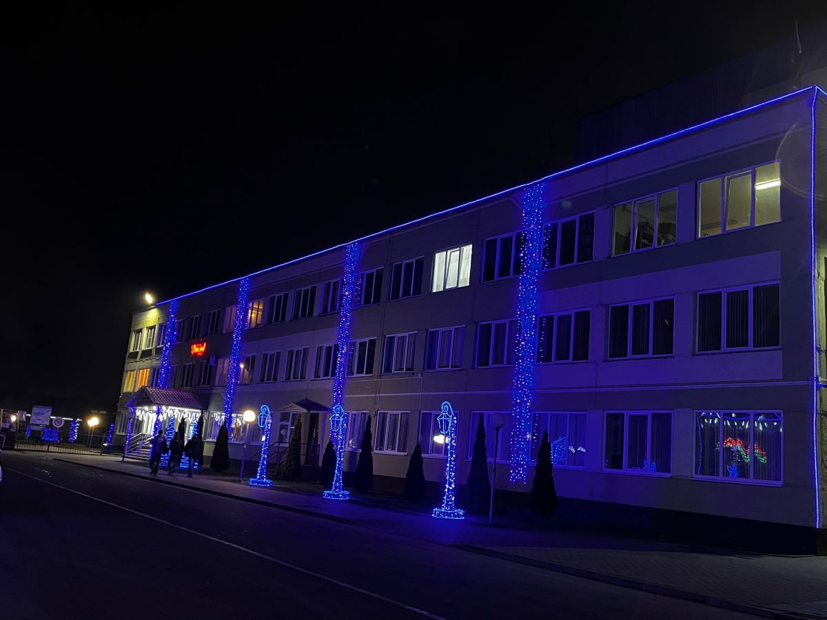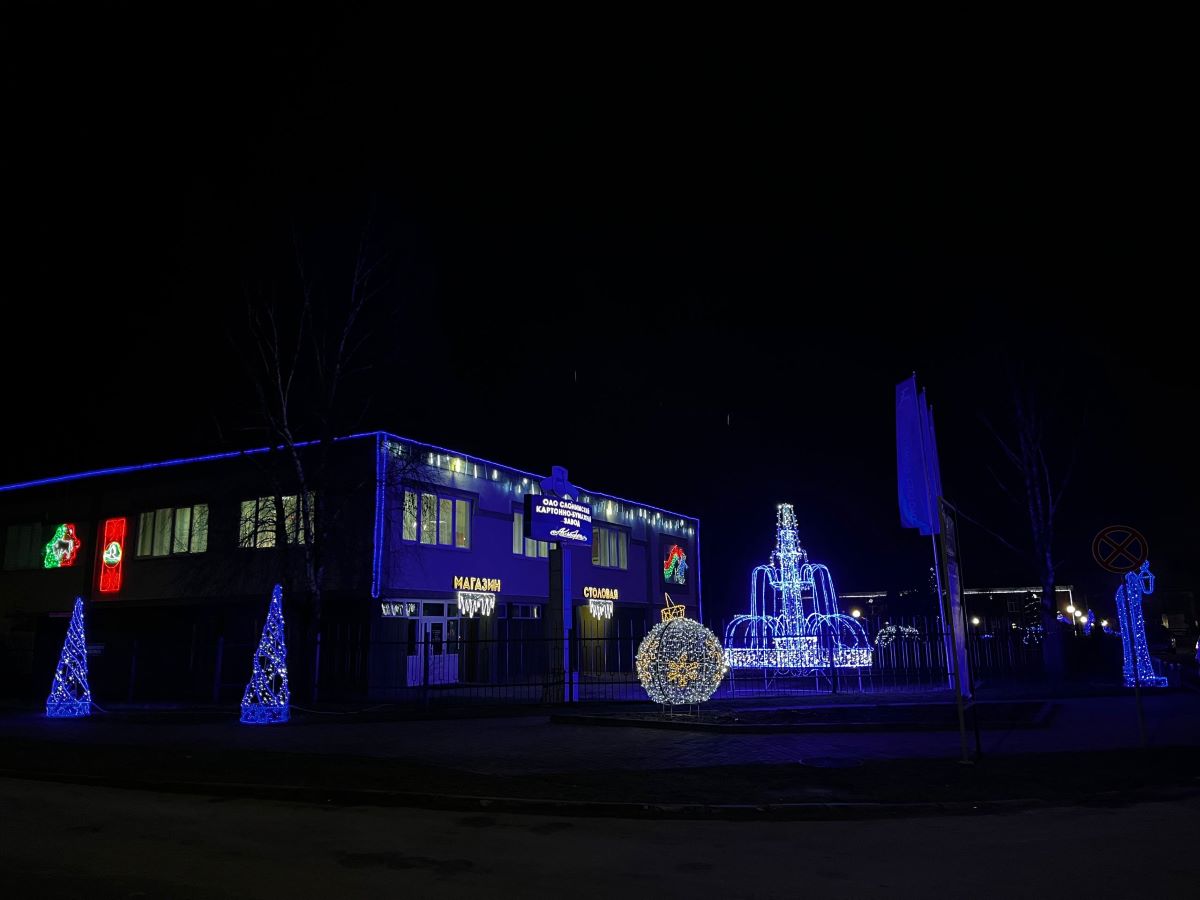 Вся большая территория предприятия перед рождественскими и новогодними праздниками засияла яркими волшебными огоньками и оригинальными украшениями.