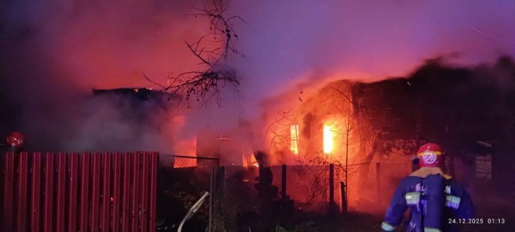 Первое сообщение поступило 24 декабря в 00:36. В агрогородке Одельск Гродненского района загорелся частный жилой дом. К моменту прибытия подразделений МЧС крыша деревянного строения уже была полностью охвачена огнем. По словам хозяина, находясь в доме, он почувствовал запах гари и услышал треск шифера. Выйдя на улицу, мужчина увидел горящую кровлю и позвонил по номеру «101», сообщает МЧС Гродно.