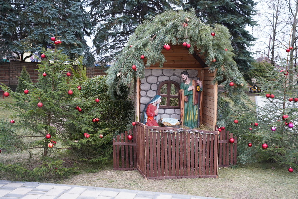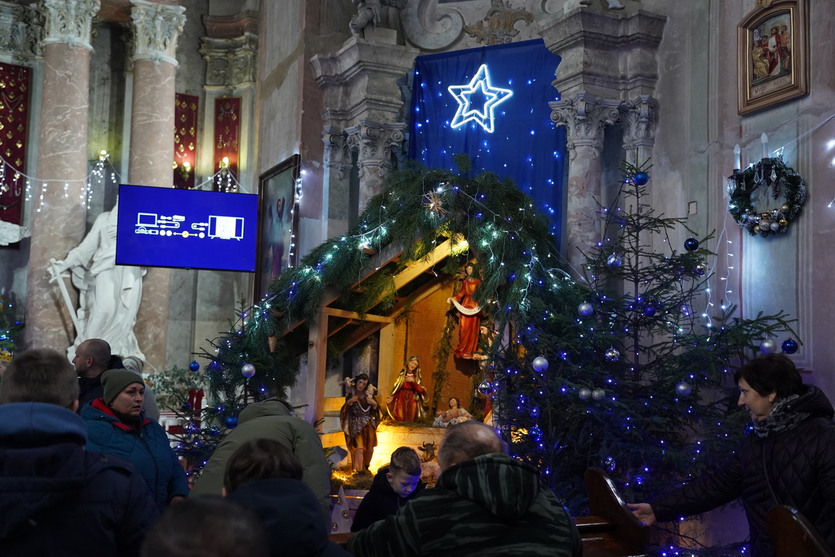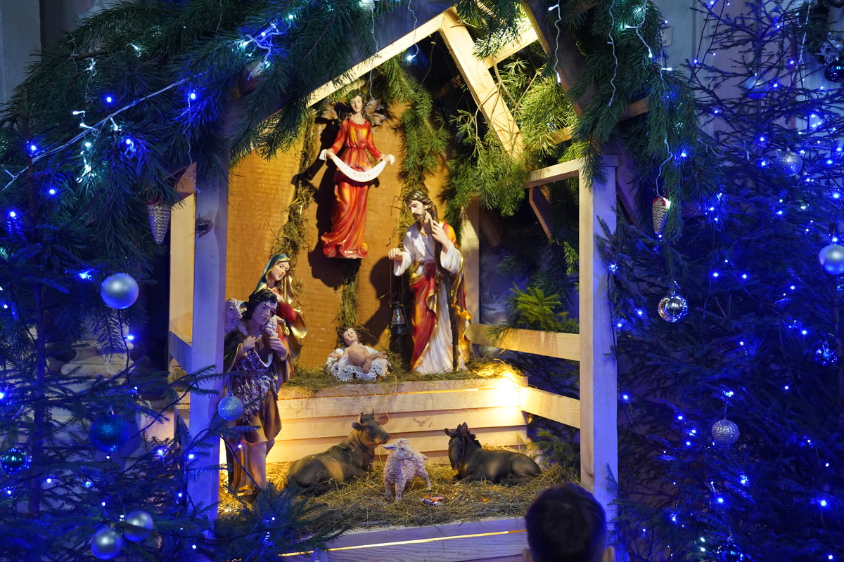 Касцёл быў святочна аздоблены да Божага Нараджэння: каля алтара стаялі прыгожыя ёлкі з сінімі шарамі і гірляндамі, а ў цэнтры размясцілася батлейка са Святой Сям’ёй. Перад храмам таксама была ўстаноўлена батлейка пад адкрытым небам, упрыгожаная яловымі галінкамі і чырвонымі шарамі.