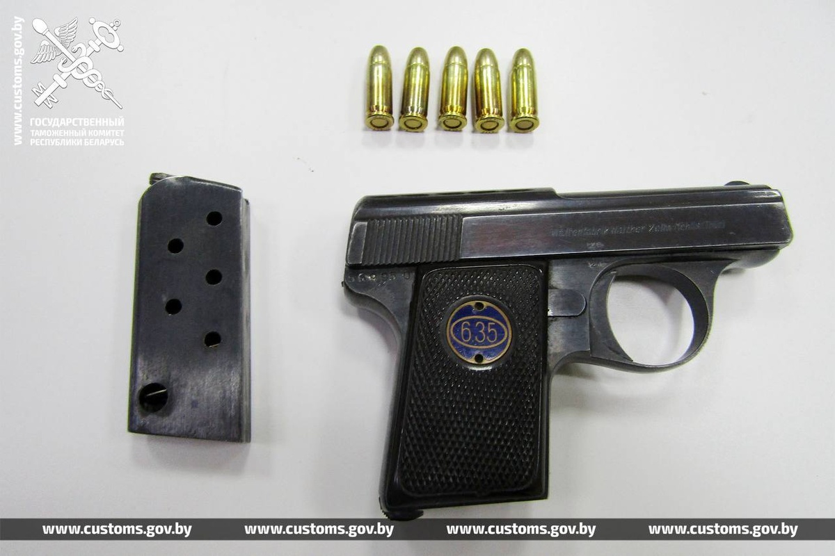 Иностранец прибыл рейсовым автобусом и выбрал зелёный коридор, подтвердив отсутствие товаров, подлежащих декларированию. Однако технические средства контроля зафиксировали наличие металлических предметов. При дальнейшем досмотре у мужчины обнаружили пистолет Walther mod.9 с обоймой, в которой находились пять патронов калибра 6,35 мм.