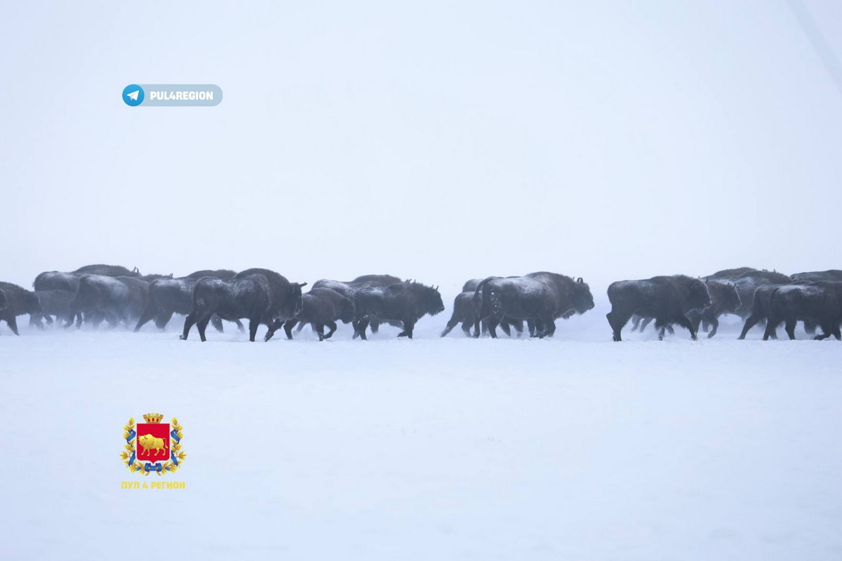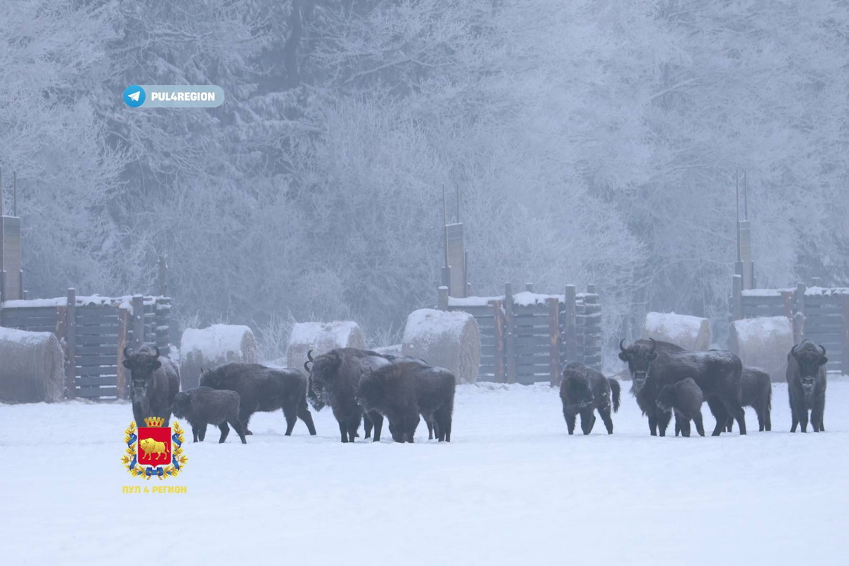 Смотрите, как под Гродно в морозы кормят зубров