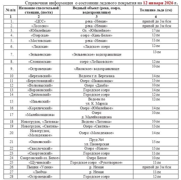 В Гродненской области толщина ледового покрытия на 12 января превысила 7 см — выход разрешён, сообщает ОСВОД Гродно.