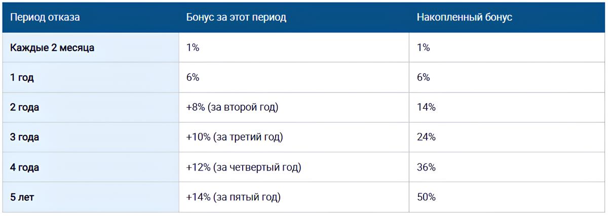 За каждый период отказа от получения пенсии начисляются премиальные проценты к заработку, из которого рассчитывается пенсия.