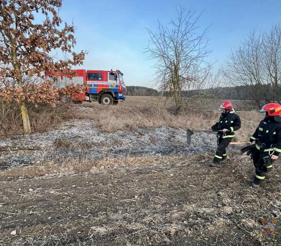 За выходные спасатели пять раз тушили сухую траву в Гродненской области.