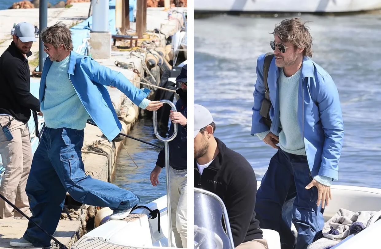 Питт появился на публике в светло-голубом шерстяном свитере, темно-синей куртке на молнии и брюках с множеством карманов. Растрепанные волосы и легкая небритость придали его образу непринужденность — актер выглядел расслабленным и в хорошем настроении.