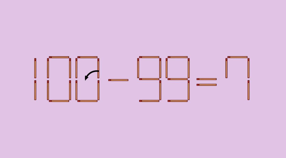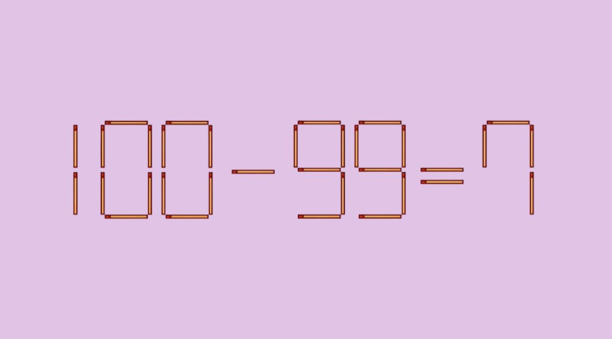 Перед вами неверное равенство, составленное из спичек: 100–99=7