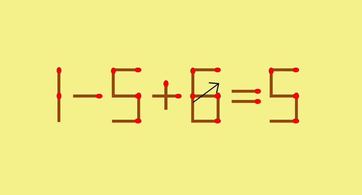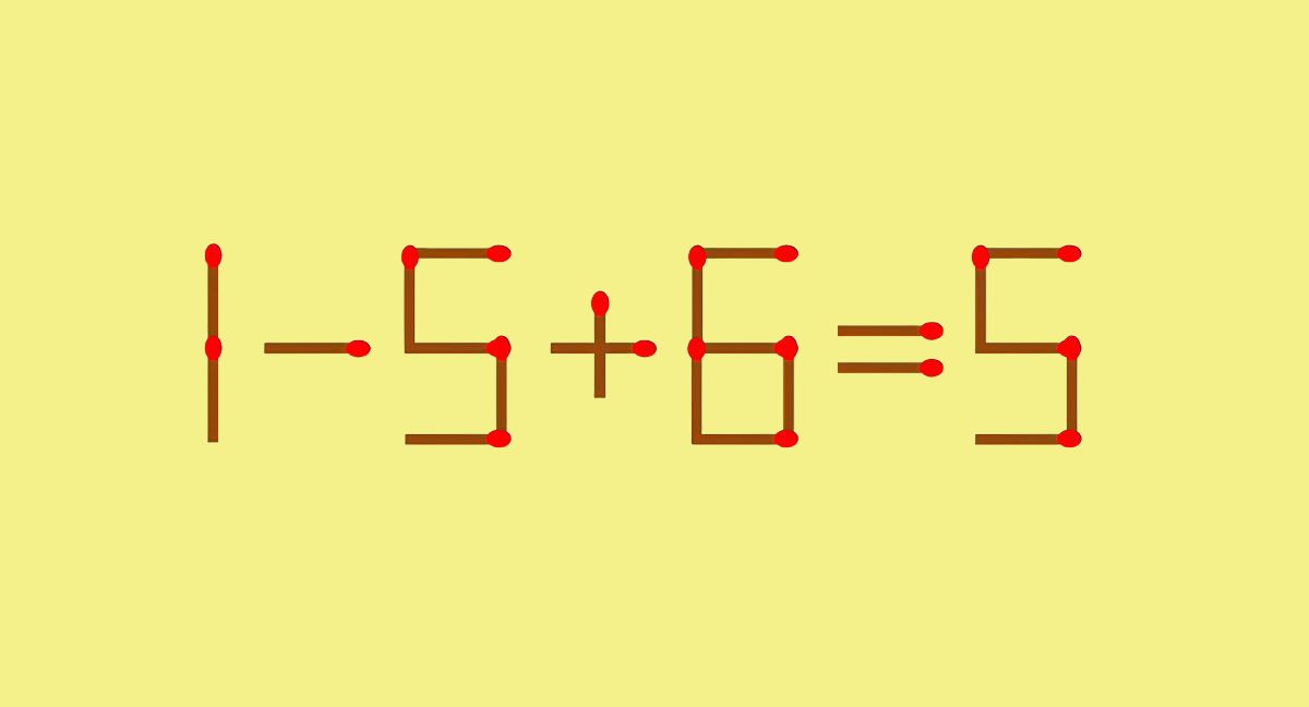 Перед вами неверное математическое равенство, составленное из спичек: 1–5+6=5.