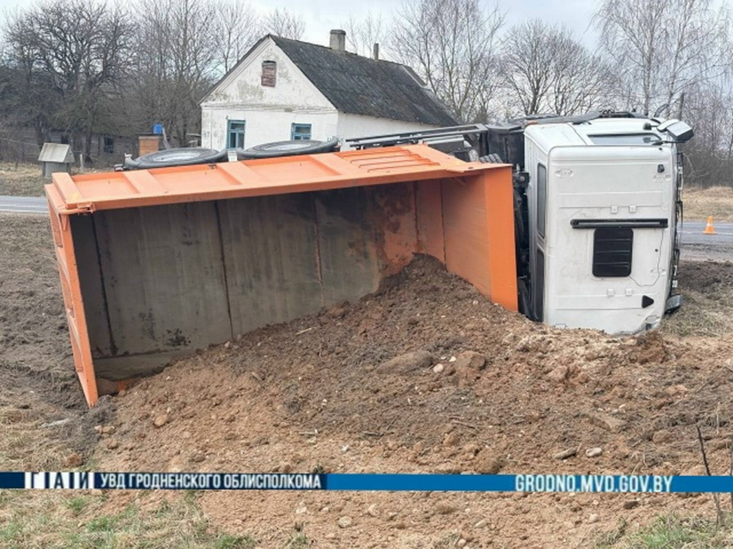 ДТП произошло 20 марта около 9 часов на автодороге Р-51 «Острино — Щучин — Волковыск». Водитель грузового автомобиля МАЗ неправильно выбрал скорость движения, не справился с управлением и допустил опрокидывание транспортного средства на правый бок, сообщает ГАИ Гродно.