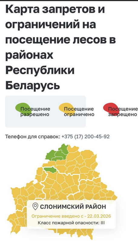 Ограничения затронули не только Слонимщину. По данным Министерство лесного хозяйства Беларуси, аналогичные меры введены практически по всей территории страны.