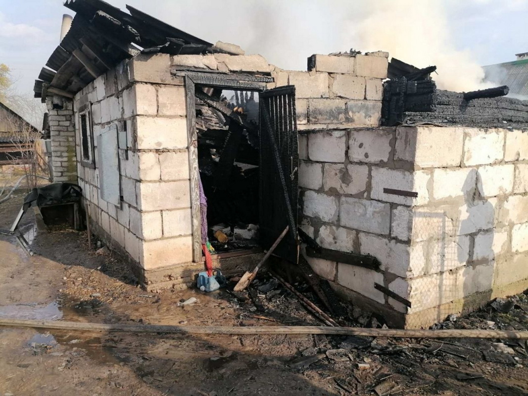 Пожар был оперативно ликвидирован. Огнём уничтожена кровля, повреждены стены.