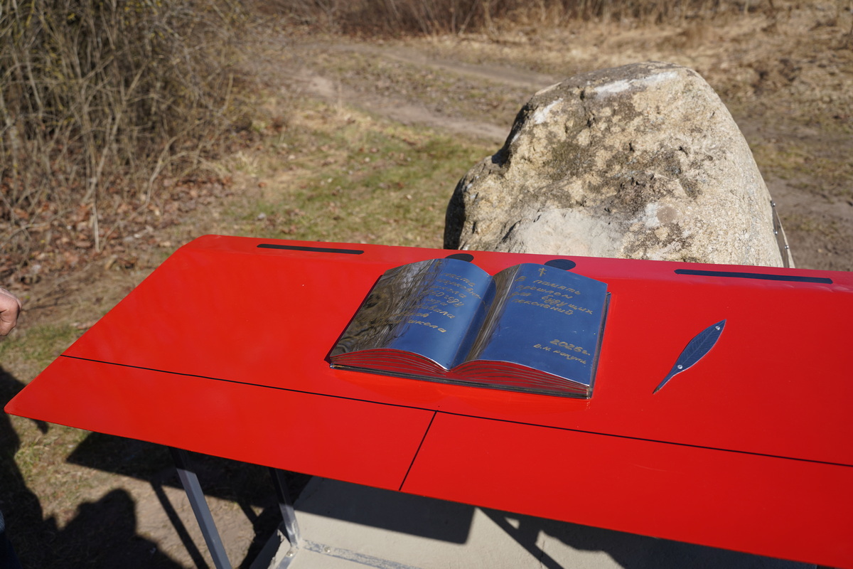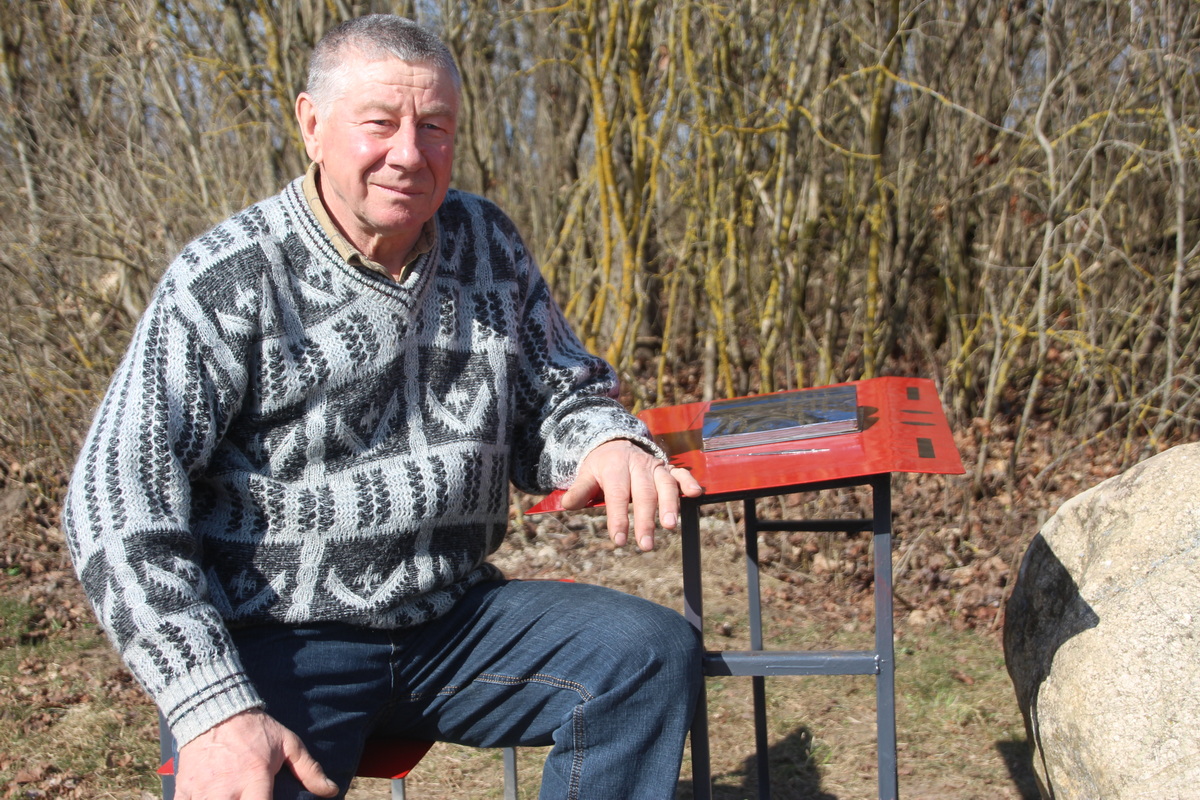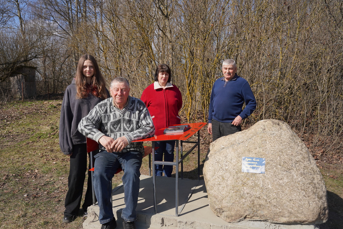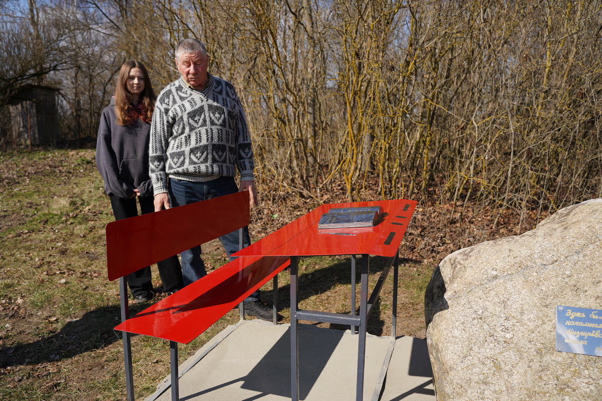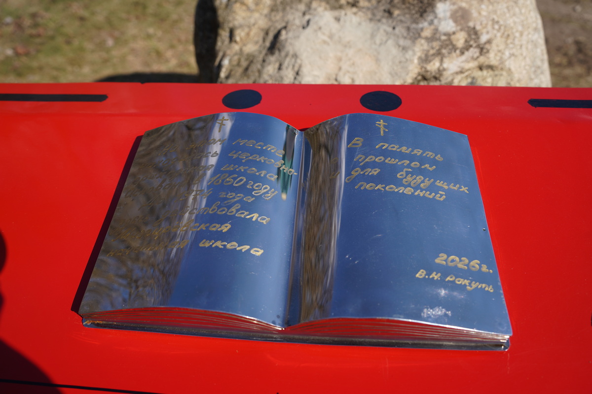 — Парту я покрасил в красный цвет, потому что в то время в четвёртых классах парты были именно такими. Книгу сделал из нержавеющей стали. В этом деле мне очень помог мой родственник — четвероюродный брат. Трактором притянули плиту, на которую установили парту и памятный знак. Было нелегко. Но сейчас, когда вижу этот знак, душа радуется. Это будет хорошая память по крайней мере навек.