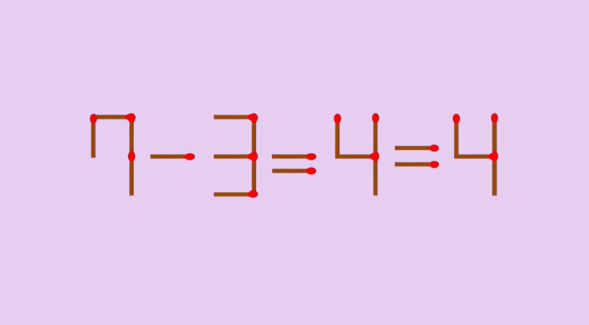 Перед вами классическая головоломка со спичками, которая ставит в тупик многих взрослых и детей. Уравнение выглядит неверным, но задача состоит в том, чтобы переложить всего одну спичку и сделать равенство истинным.