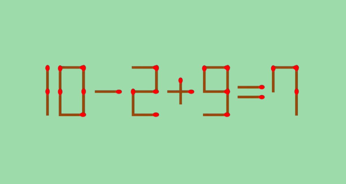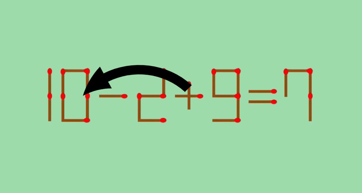 Очевидно, что математически это неверно (10–2+9=17). Задание простое: нужно переложить всего одну спичку так, чтобы равенство стало верным. На размышления даётся меньше минуты, но истинным гениям обещают успех за 21 секунду.