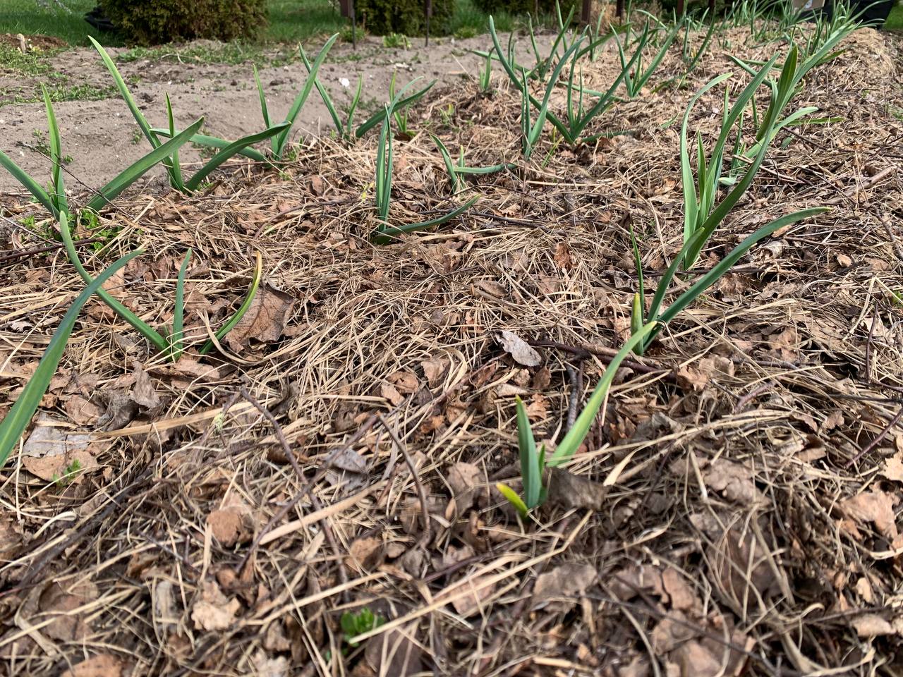 «Мульча за зиму и весну перепревает, превращаясь в мягкий, рыхлый слой. Через него чесноку легко пробиваться, почва под ним дышит, сохраняет влагу и не берётся коркой. Поэтому весной мне не нужно тратить силы на рыхление — я вношу подкормку сверху по мульче», — объясняет свой подход слонимчанка.