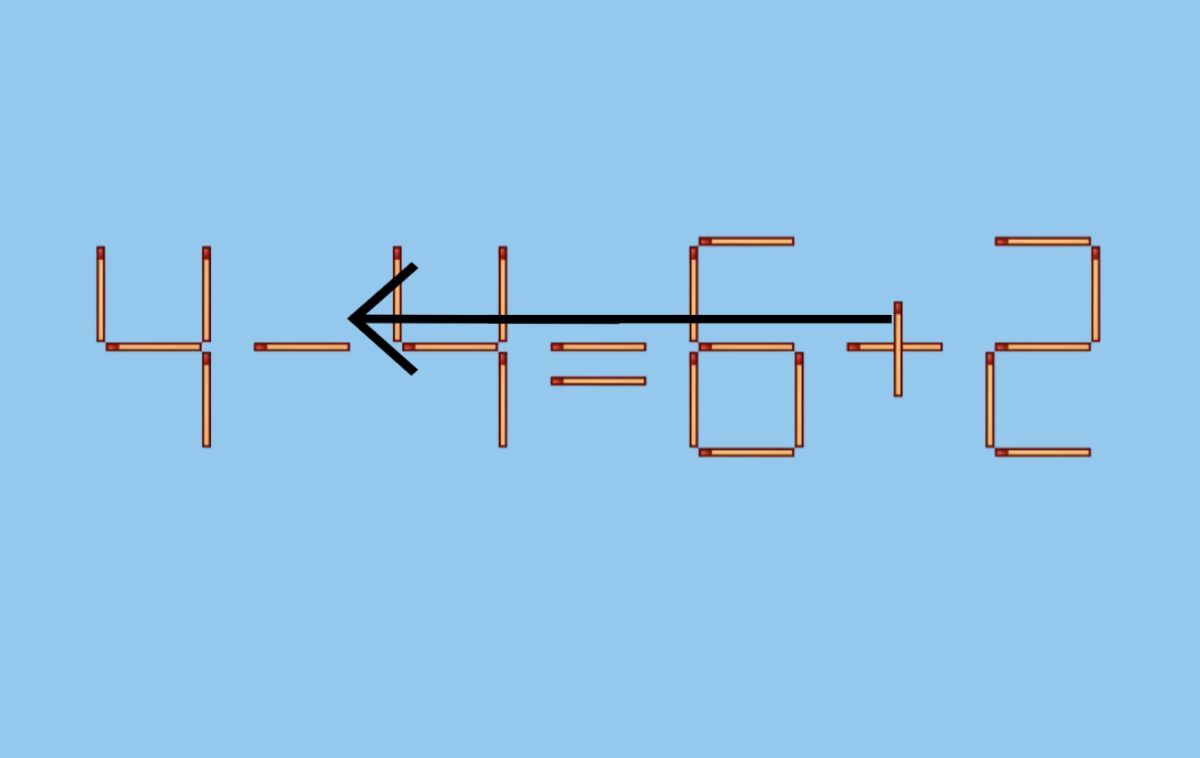 Кладём эту спичку горизонтально на первый знак «–», превращая его в знак «=».