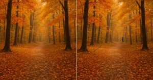 Перед вами осенний лес. Деревья уже сбросили часть листвы, и тропинка укрыта золотым ковром. На первый взгляд две картинки кажутся...