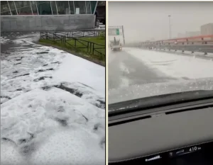Жители Северной столицы стали свидетелями редкой погодной аномалии. Днём в понедельник, 25 августа, после дождя и града в городе пошёл...