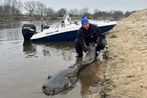 На Припяти минчанин выловил сома длиной больше двух метров.