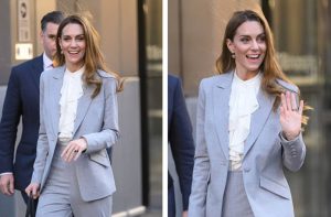 Весь образ она завершила сдержанными украшениями в виде висячих серег и своими узнаваемыми распущенными волнистыми волосами.