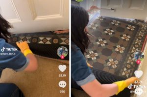 Семья после переезда нашла под старым ковром в своем столетнем доме прекрасно сохранившуюся старинную плитку.